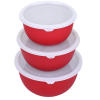 Microwave Safe Stainless Steel Plastic Coated immunity bowl Set with lid for Reheating,Serving & Storage Container 100% Airtight (Capacity: 800, 1400, 1700 ml) (Red, transparent lid, Pack of 3)
